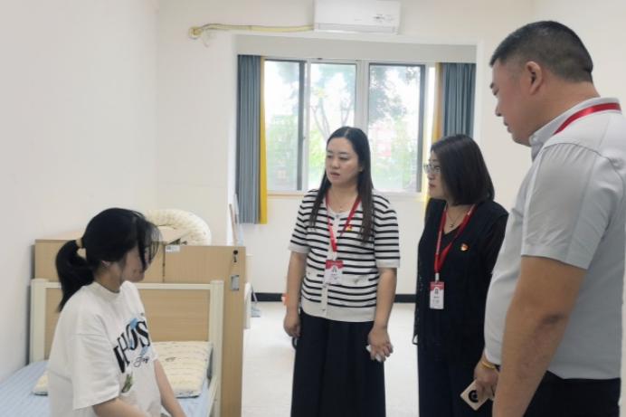 活动前期,人文社科系党支部已对工作进行周密部署,明确活动流程与分工。当天下午12:40,学校党委委员、纪委书记姜振宇及人文社科系与马克思主义学院领导班子均积极参与,与全体党员教师一同准时在静思苑宿舍楼下集合,展现出对新生关怀工作的高度重视。在简短明确任务分工后,大家以党小组为单位,迅速投入到宿舍走访工作中,展现出党组织凝心聚力、高效服务新生的良好风貌。 此次走访范围全面覆盖静思苑、润泽苑两大宿舍区的多个楼层,三个党小组分别负责不同区域的新生宿舍走访任务,确保能精准对接每一片区的新生群体。为进一步提升走访效率与精准度,新生宿舍名单已提前上传至工作群,供党员教师随时查阅参考,让服务更具针对性与实效性。 走访过程中,党小组组长们切实履行统筹职责,合理分配组内党员教师任务,明确分工、压实责任,保障走访工作有序推进。党员教师们带着热情与关怀走进每一间新生宿舍,主动与新生拉起家常,耐心询问他们的入住适应情况,细致了解生活中遇到的困难与需求,从宿舍设施使用、生活物资采购,到校园环境熟悉、学习规划制定,都给予了细致的指导与建议。面对新生提出的疑问,教师们一一耐心解答;对于新生反映的问题,认真记录并承诺及时协调解决,用实际行动让新生感受到系部党组织的温暖与学校的关怀。