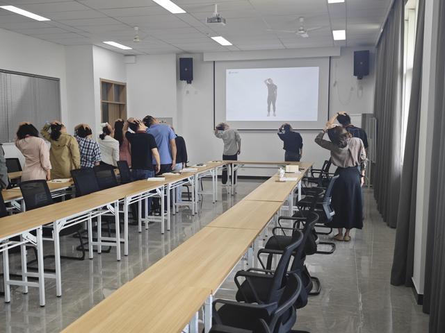 每周全系教职工大会召开前,两位教师代表组织大家进行做操活动,通过一系列简单易学、舒缓身心的体操动作,帮助老师们舒缓身体疲劳,提升精神状态,以更加饱满的热情迎接大会的召开。活动过程中,教职工们跟着音乐的节奏,认真地做着每一个动作,现场气氛热烈而欢快。这种形式的活动丰富了老师们业余生活,让大家在工作之余感受到了集体的温暖和关怀。
