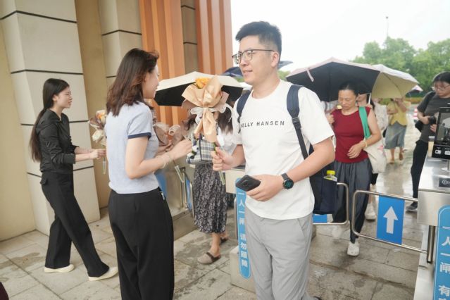 清晨的校园东门,细雨蒙蒙,暖意融融。一群手捧鲜花的学生早早在此等候,他们手中的花朵色彩鲜艳、香气淡雅,每一朵都承载着对老师的敬意与感谢。当老师们陆续走进校园时,学生们立刻围上前,双手递上鲜花,轻声道一句“老师,教师节快乐!”。稚嫩的声音与灿烂的笑容,搭配着娇艳的花朵,让老师们的脸上瞬间洋溢起幸福的笑容,不少老师拿出手机记录下这温馨的瞬间,小小的东门成了校园里最早传递节日温情的地方