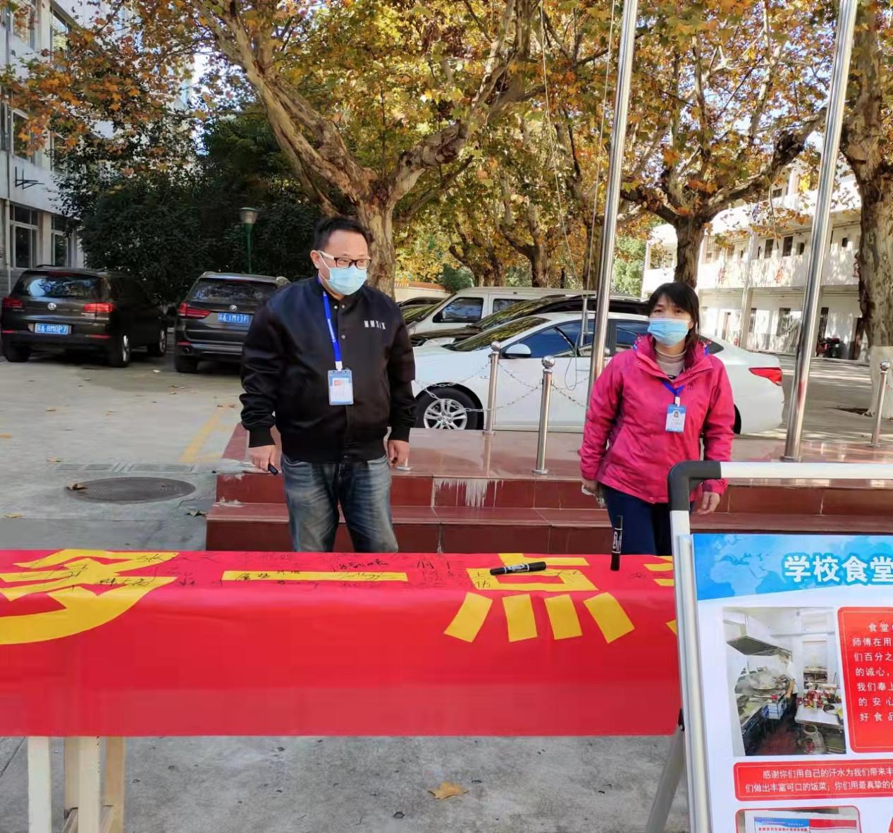 为确保全院师生用餐安全,提高食品安全意识,落实学院平安校园建设,学院后勤处(中央门校区)开展食品安全宣传教育暨师生签名活动。