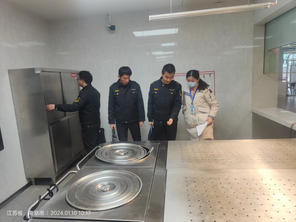 为落实南京市市场监督局校园食品安全排查整治专项行动,2024年1月10日上午,高淳区市场监督局食品科赵金朋科长、高淳区开发区分局吕鹏飞局长带队对我校食堂食品安全进行检查,后勤处周涛及食堂现场负责人陪同。