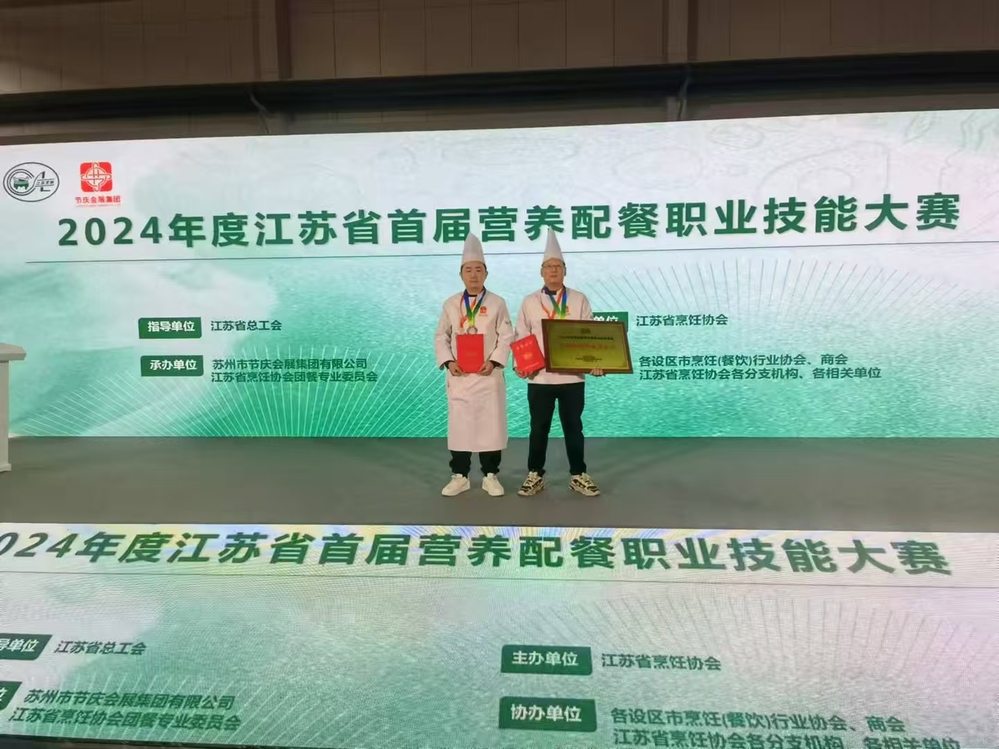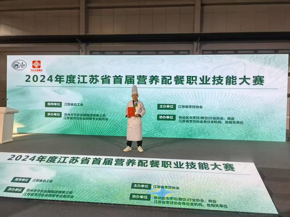 在2024年12月28日刚刚结束,由江苏省烹饪协会主办的2024年度江苏省首届营养配餐职业技能大赛中,米兰官方网页版一楼学生食堂厨师张发旭,凭借精湛厨艺与科学营养搭配脱颖而出,斩获学生营养餐银奖、营养套餐银奖两项大奖。
