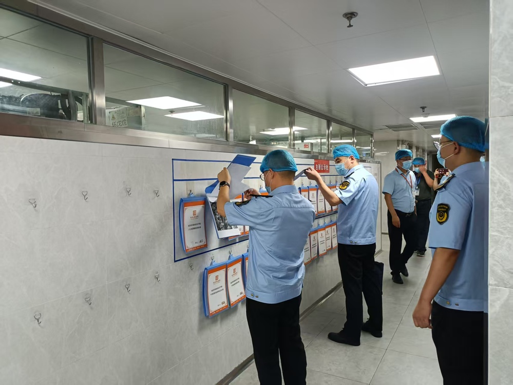 查组深入食堂前厅后场,依次对粗加工间、烹饪间、备餐间、洗消间、保洁间以及主副食品原料库等区域进行了全面检查并对食品供货厂家开展了源头追溯核查