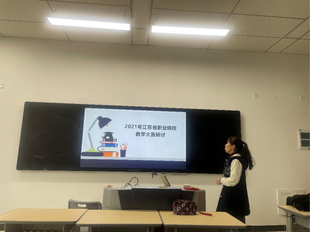 卢彬老师首先就教学大赛报名要求、材料要求、比赛形式等方面对2020年江苏省职业院校教学大赛方案进行了详细解读,她重点指出一个教学大赛作品教学设计很重要,要有设计亮点,例如课程思政、劳动教育、1+X证书融入、新技术新规范新工艺、对接国家战略、活页式教材等等。接着卢老师给教研室老师展示了机械制图课程参加2020年江苏省职业院校教学大赛的文件材料,对专业人才培养方案、课程标准、参赛教案、教学实施报告、参赛作品视频等方面进行了详细剖析,并分享了参加比赛的心得和体会。然后教研室老师观看了2020年职业院校教学大赛国赛获奖作品,分别是苏州工业园区工业技术学校与无锡汽车工程高等职业技术学校作品《智能驾驶辅助系统的检修》和南京铁道职业技术学院与江苏财会职业学院《二重积分及其应用》。