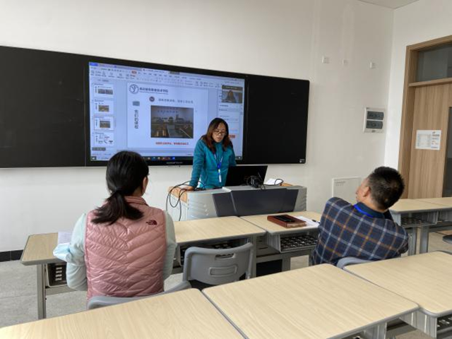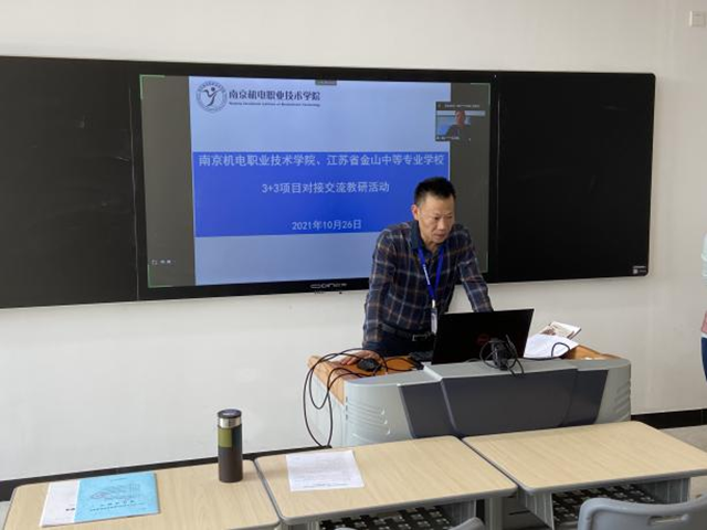 然后,金山中专机电技术应用专业负责人汪老师向大家介绍了机电技术应用专业的招生、师资、设备、考证等相关信息。之后,南京机电机械制造及自动化专业负责人陆老师为大家分享了机械制造及自动化专业的概况、培养目标、人才培养模式、课程体系、实践教学基地、毕业条件、就业岗位、师资队伍、专业建设成果等信息。最后双方针对合作专业的课程设置、专利申请等问题展开交流。团队陆老师回答了有关PLC、液压等课程的教学内容、教学设备等问题,团队张老师跟对方分享了有关专利挖掘和专利申请方面的经验和体会。