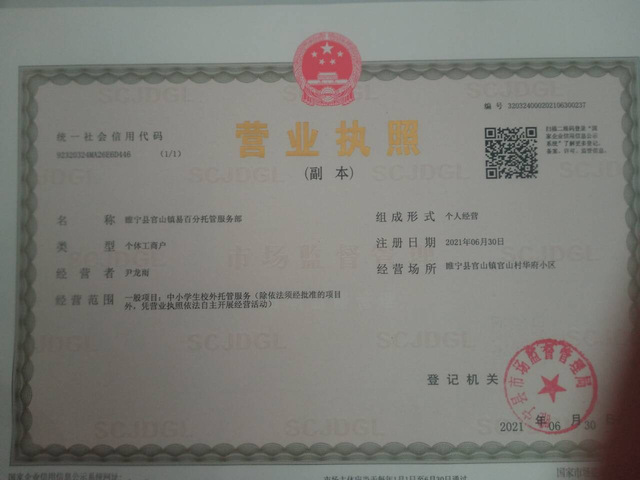 2021年7月—至今:睢宁县官山镇易百分托管服务部 业主