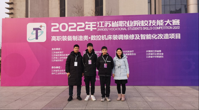 2022年1月17日-18日,江苏省职业院校技能大赛数控机床装调维修及智能化改造赛项在徐州工业职业技术学院举行。米兰官方网页版机械工程系陆晨芳老师、谢兵老师,带领机械制造与自动化203班巴城力同学、文波同学参加了本次比赛,最终在18个参赛队中排名第7,取得了三等奖第一名的成绩。