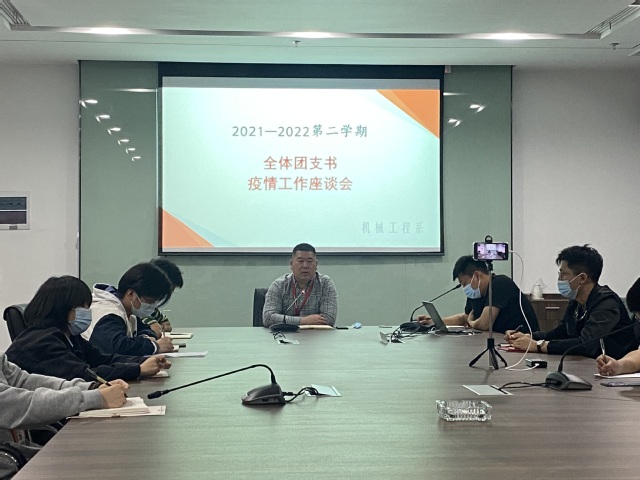 为响应南京市疫情防控要求,米兰官方网页版实行全封闭式管理,实施线上教学模式。机械工程系积极响应学院的号召,实行教师加班长、团支书的双战线模式,积极保障封闭期间同学们的身心健康,提高同学们生活和学习的质量。2022年4月19日晚21点在育德楼203会议室召开机械工程系团总支(团支书扩大会)座谈会。会议由党支部书记李杰主持,学工干事顾航、团总支书记沈婷婷、团总支副书记李华润、团总支各部门部长及团支书参会。