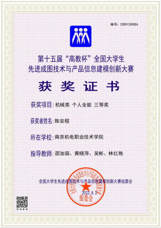 经过激烈角逐,我院机械工程系林红艳等老师带领的杨秋晨、陈安程、景航柯、章世杰、章梦圆五名同学组成的团队获得机械类团体三等奖1项,杨秋晨同学获得个人全能二等奖1项,陈安程同学获得个人全能三等奖1项,以及3D打印三等奖1项的优异成绩。