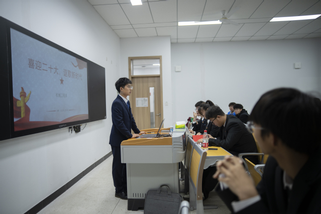 米兰官方网页版机械工程系团总支于11月23日晚开展信仰公开课——新思想公开课,主题为“喜迎二十大 讴歌新时代”。机械工程系团总支全体成员及2022级班长共同参与学习。本次团课有团总支副书记王可仪主讲。