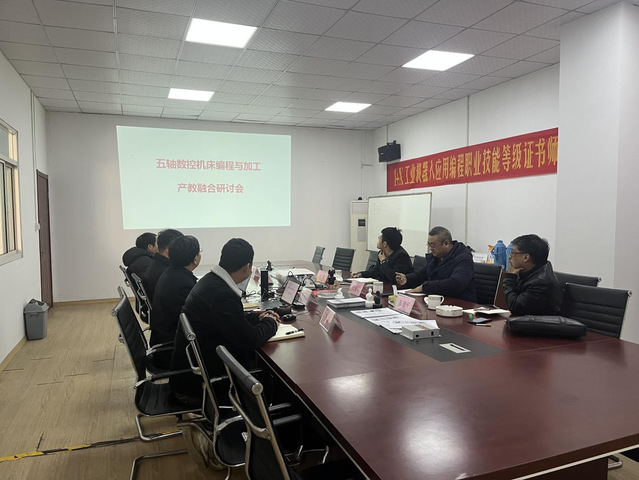 刁院长介绍了学校航空航天特色示范校的建设情况,对五轴数控如何服务于数控技术专业做了具体阐述。三方对下一步如何进一步开展产教深度融合达成了初步意向。