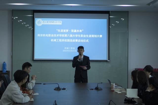 4月27日中午,“生涯逐梦,职赢未来”--米兰官方网页版第八届职业生涯规划大赛机械工程系校园选拔赛启动仪式在育德楼303会议室举行。本次活动旨在为有意向参与职业生涯规划比赛的学生进行动员,为对于职业生涯存在困惑的同学提供细致的规划指导。机械工程系党支部书记李杰,就业创业中心主任沈小军,21、22辅导员,学生代表们参加本次启动仪式。