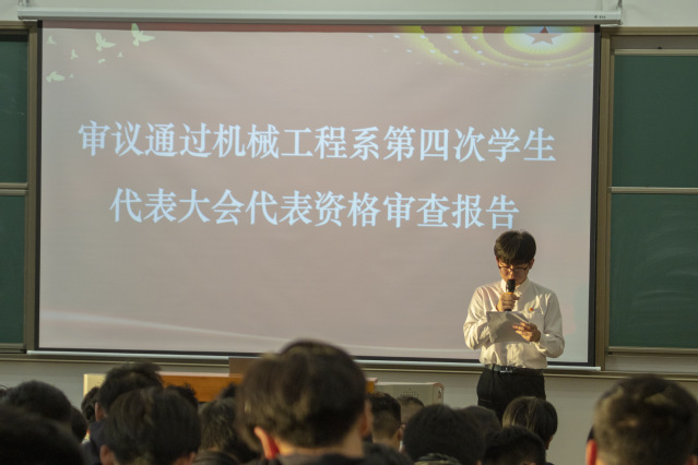 机械工程系团总支代表王可仪宣读学生代表大会贺词,机械工程系学生会主席韩田源宣读机械工程系第四次学生代表大会代表资格审查报告,机械工程系学生会副主席汤茂田宣读《米兰官方网页版机械工程系第四次学生代表大会选举办法》,各项报告在热烈的掌声中一致通过。
