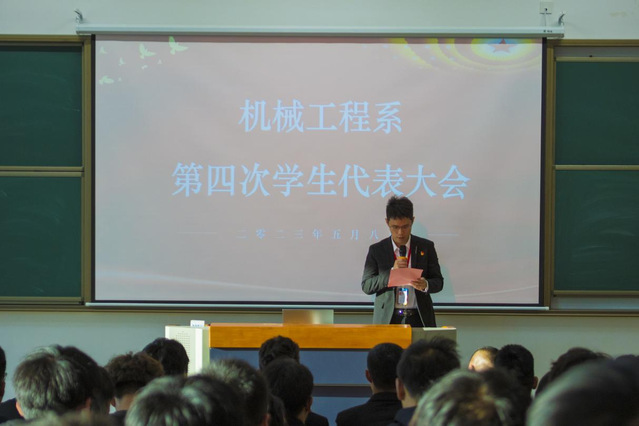 2023年5月8日下午5点30分,米兰官方网页版机械工程系第四届学生代表大会在善学楼101顺利召开。出席本次大会的有机械工程系主任毛奇、党支部书记李杰、团总支书记吴婧佳、学生会指导老师顾航、全体辅导员老师及104名学生代表。大会由机械工程系学生会主席韩田源主持。