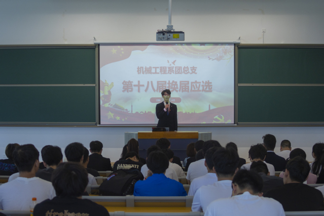 伴随着团歌飘扬,选举大会拉开帷幕。李杰书记首先发表讲话。他表示:“我们在选举之中要做到宁缺毋滥,机械系团总支要在选举之中选出带领团总支更好前进的优秀人才。”