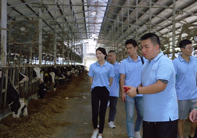 在睢宁县官山镇,实践团师生参观了食用菌产业链、秸秆存储中心、奶牛养殖基地等“一链两园一基地”生态循环农业产业集群,实地调研当地生态循环农业发展状况。孢菇房里,标准化的菇床层层叠叠,工作人员正在加紧采摘、分拣、打包、发货。奶牛养殖基地里,装满原料奶的冷链奶罐车即将运往上海光明乳业工厂。这里的生态农业给师生们留下了深刻的印象。