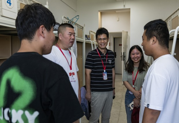 机械工程系主任毛奇,党支部副书记李杰,副主任黄晓萍带领各班辅导员们、专业教师们深入学生宿舍,了解学生报到情况,对有特殊情况未能及时报到的新生进行电话联系询问原因并主动表示关心,对于已经报到的新生表示关心与慰问,耐心进行安全教育和答疑解惑,与新生们搭建起师生间的沟通桥梁。