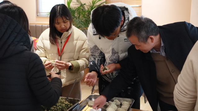为保证活动顺利开展,机械工程系分工会提前与食堂工作人员沟通准备好饺皮和师生喜爱的饺子馅,如:芹菜猪肉馅、白菜猪肉馅、荠菜猪肉馅,众多食材“整装待发”。活动中,我系师生积极踊跃报名,纷纷展现出自己居家小能手的一面。大家根据自己家乡的习俗和习惯,通过翻转、折叠、捏压等娴熟的手法快速包出一个个精美的形状,如:月牙状、麦穗状、元宝状、太阳状等,还有的老师将饺子皮包出包子的样式。别出心裁的是,大家还给饺子中随机包入大红枣,幸运的师生吃到红枣水饺可以领取一份小礼物。整个活动过程中,大家欢声笑语,其乐融融,气氛热烈。最后,一盘盘热腾腾的水饺上桌时,场面立刻沸腾起来了,大家享受着自己的劳动成果,脸上洋溢着灿烂的笑容,让大家在严寒的冬日感受到机械大家庭的温暖。