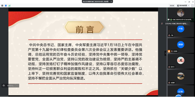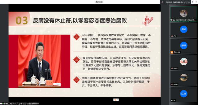 机械工程系党支部集中学习习近平总书记十九届中央纪委六次全会重要讲话精神