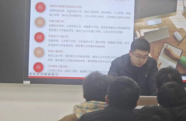 在班会上,汪维民帮助同学们分析了今年的课程安排、院校招生计划,并且告知同学们下学期的课程规划安排,内容如下:大学英语四级共安排12课次,高等数学共安排14课次,大二班级专业课共安排280课时(节),五一劳动节和端午节正常放假。机械工程类共计2965个招生计划,涵盖17个专业;其中公办1435个,民办1530个,相较2023年招生计划,扩招计划数为212个,增加7.7%。对于同学们来说,这无疑是个好消息,大家的上岸机会更大了。