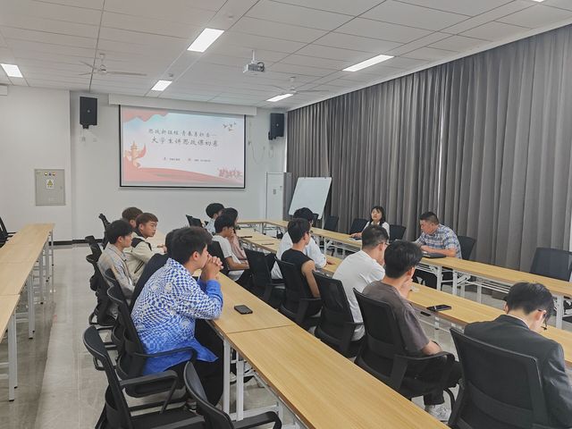 为全面贯彻落实党的二十大精神,围绕以学生成长为中心,深化学校思政课改革创新,把思想政治教育贯穿教育教学的全过程,学校党委宣传部联合思想政治教育研究中心、网络思想政治工作中心举办首届大学生讲思政课比赛“思政新征程 青春勇担当”以来,机械工程系各班级依托《习近平新时代中国特色社会主义思想概论》思政课积极参赛,机械工程系于2024年5月31日中午在笃行楼401开展初赛,由机械工程系党支部副书记李杰,网络思政站站长原智慧担任评委,本次比赛由原智慧主持。