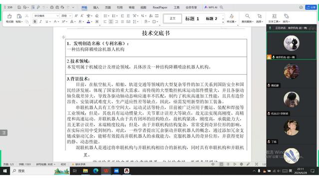 2024年6月28日,南京机电-南京钢铁现场工程师班级成功开展了一场以“专利撰写与申请”为主题的班会活动。此次班会旨在进一步提升班级学员在专利创新、撰写及申请方面的能力,推动班级专利工作取得更大突破。