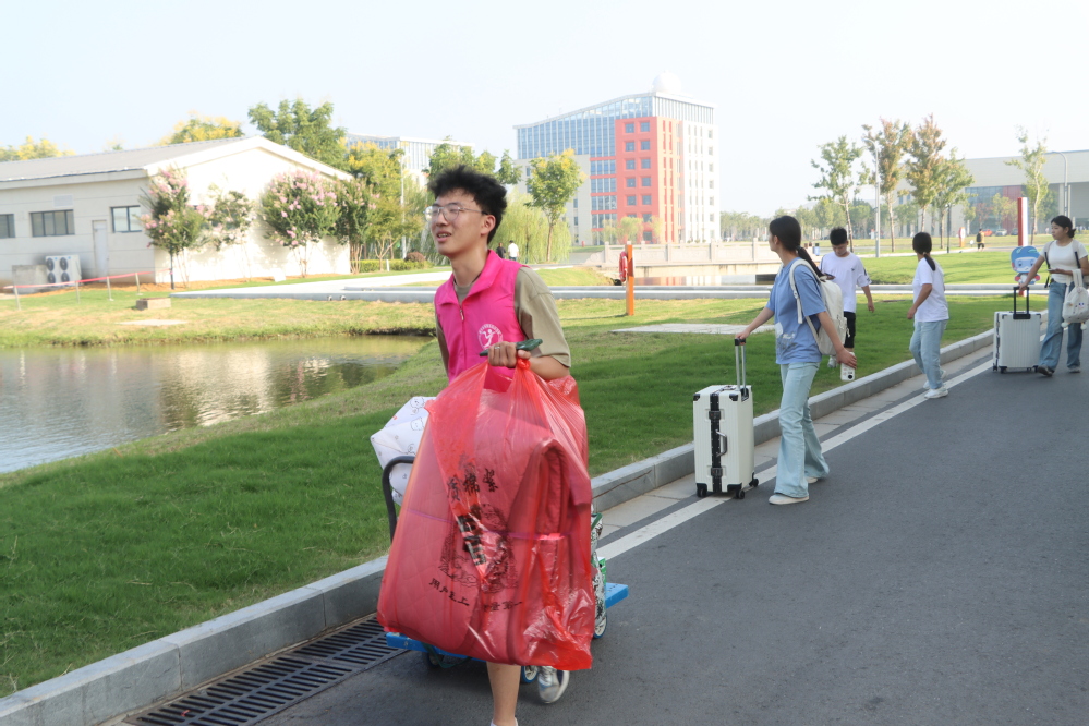 入学序章:手续便捷,温暖如家。清晨6点30分,机械工程系主任毛奇、党支部副书记李杰、副主任黄晓萍及全体教师和志愿者们已遍布校园,他们以热忱之心,为新生与家长引路、助力,从校门至宿舍,每一站都留下温暖的足迹,让新生初入校园即感家之温馨。