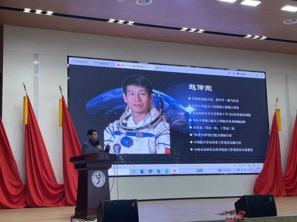 南京号卫星研制并发射,卫星地面接收站、卫星测控中心的建设是为了我校能更好地培养航天产业人才,其最大的应用是服务于教师的教学课堂,会上,学校党委委员、副校长刁爱军宣布南机电“星空课堂”正式开课。随后,航天员赵传东在学校报告厅为老师和同学们带来了精彩的讲座,为师生开启了一段充满奥秘的航天知识之旅。