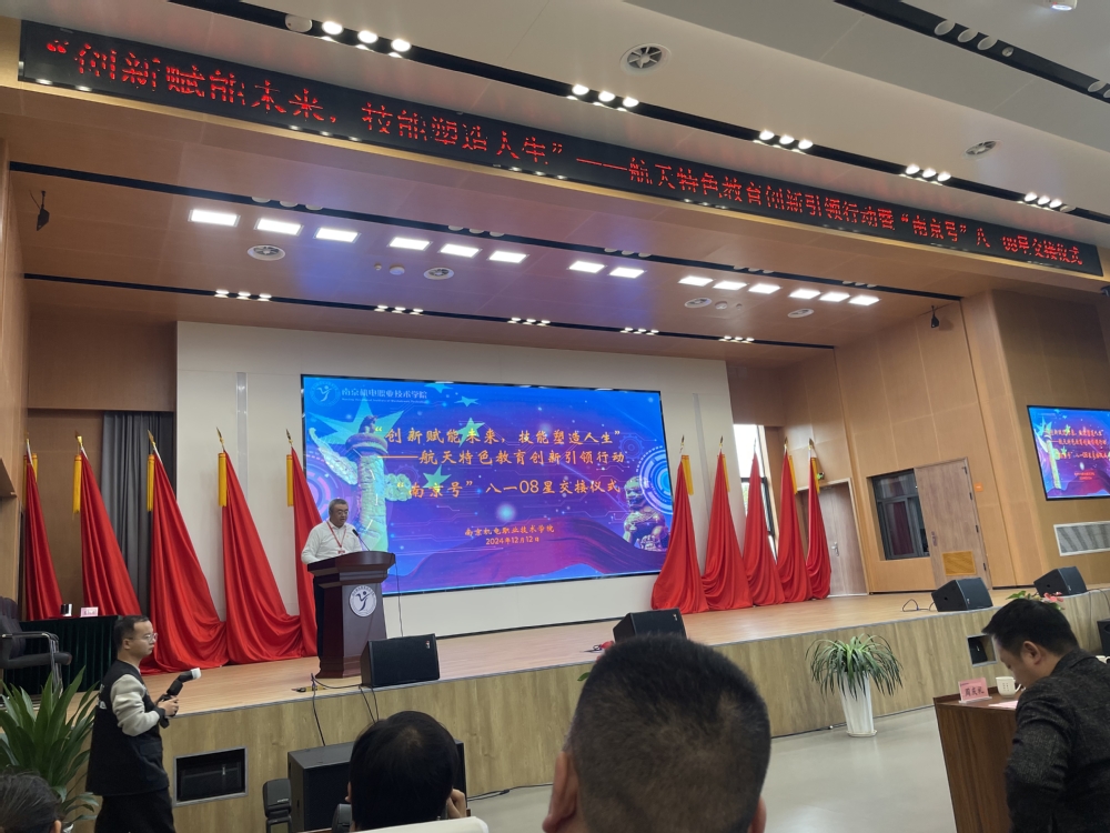交接仪式由学校党委委员、副校长刁爱军主持。米兰官方网页版党委书记、校长周庆礼表示,“南京号”八一08星的成功,是对习近平总书记给北京市八一学校科普小卫星研制团队回信精神的承续,是贯彻落实回信精神的生动实践,更是在关键时期对南机电师生的重要激励。学校将用心呵护这颗科普卫星所代表的精神火种,将航天精神融入校园文化建设中,融入人才培养的每一个环节。