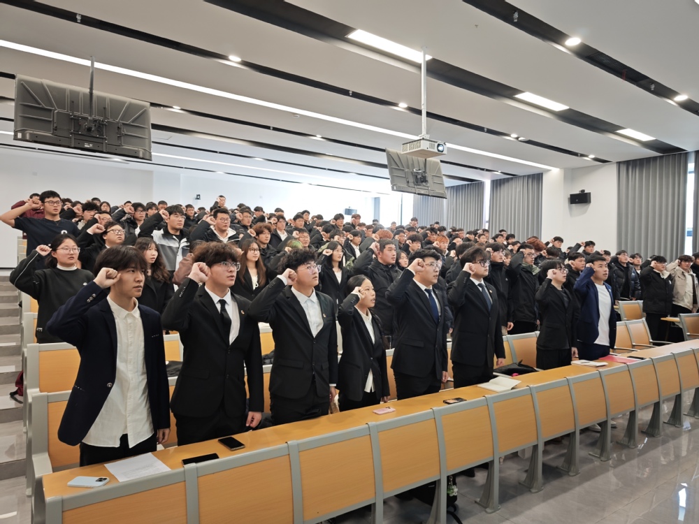 随后,全体学员在王浩宇同学的带领下庄严宣誓,表达了他们以共青团员的标准严格要求自己,为党和国家的事业贡献力量的决心。