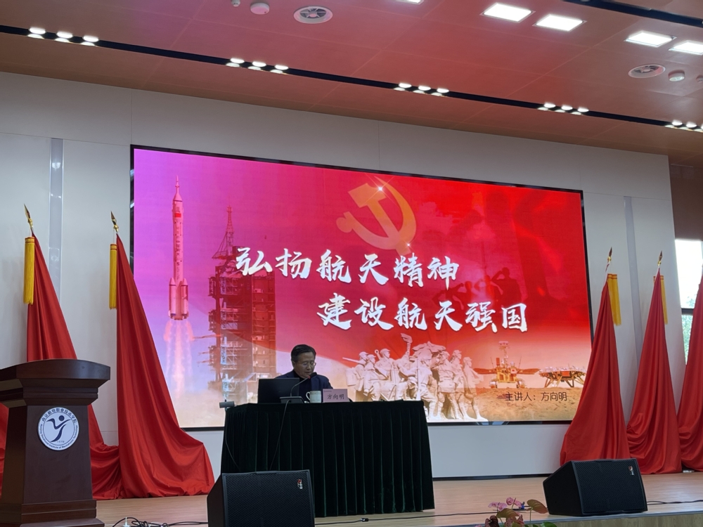 他首先带领大家回顾了人类航天事业的起源、发展历程以及关键里程碑事件,展现了航天事业从无到有、从小到大的壮丽图景。接着,他详细介绍了新时代中国航天事业取得的辉煌成就,如载人航天、月球探测、北斗系统及天宫空间站等,彰显了我国航天事业的蓬勃发展和国际地位的提升。他强调航天事业的高风险、高投入、国际化合作和技术创新驱动特点,及其对国家安全与国际地位的重要性。通过讲述航天先驱与当代杰出人物的故事,方向明书记弘扬了勇于探索、挑战极限、无私奉献和团队合作的航天精神。他鼓励大家在新时代背景下继续发扬航天精神,推动航天事业高质量发展,并激励师生勇于追梦、担当责任,为航天事业贡献力量。
