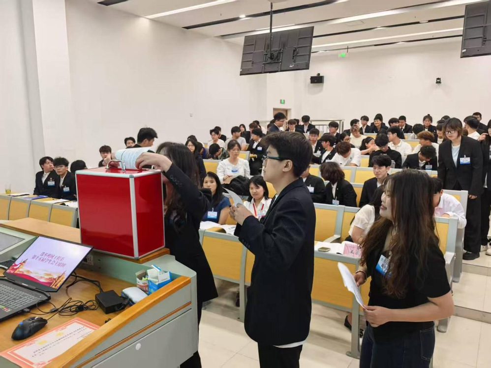 随后,大会步入投票选举阶段,现场秩序井然。代表们依次走上讲台进行投票,通过差额选举的方式,在6名候选人中孟浏、汪翔、陈文聪同学脱颖而出,成为米兰官方网页版机械工程系第十五届学生会主席团成员。