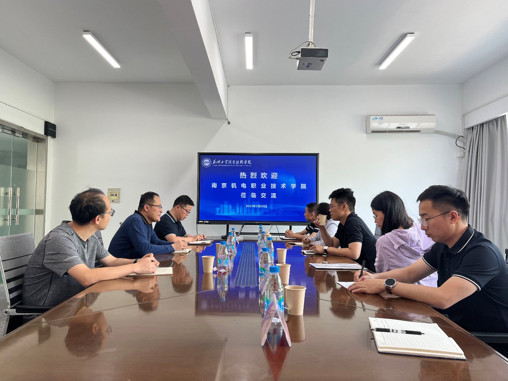 当天下午,调研团队前往苏州工业职业技术学院进行交流学习。双方围绕人才培养方案、实训基地与产业学院建设、资源建设、技能大赛等多个方面展开了广泛而深入的交流。在交流会上,苏州工业职业技术学院分享了在上述领域的成功经验和创新做法,米兰官方网页版机械工程系也介绍了自身的发展情况与面临的问题,双方相互借鉴,共同探索提升职业教育质量的有效途径。会后,毛奇一行还参观了苏州工业职业技术学院的实训基地,对其实训设施、实践教学模式等有了更直观的认识。