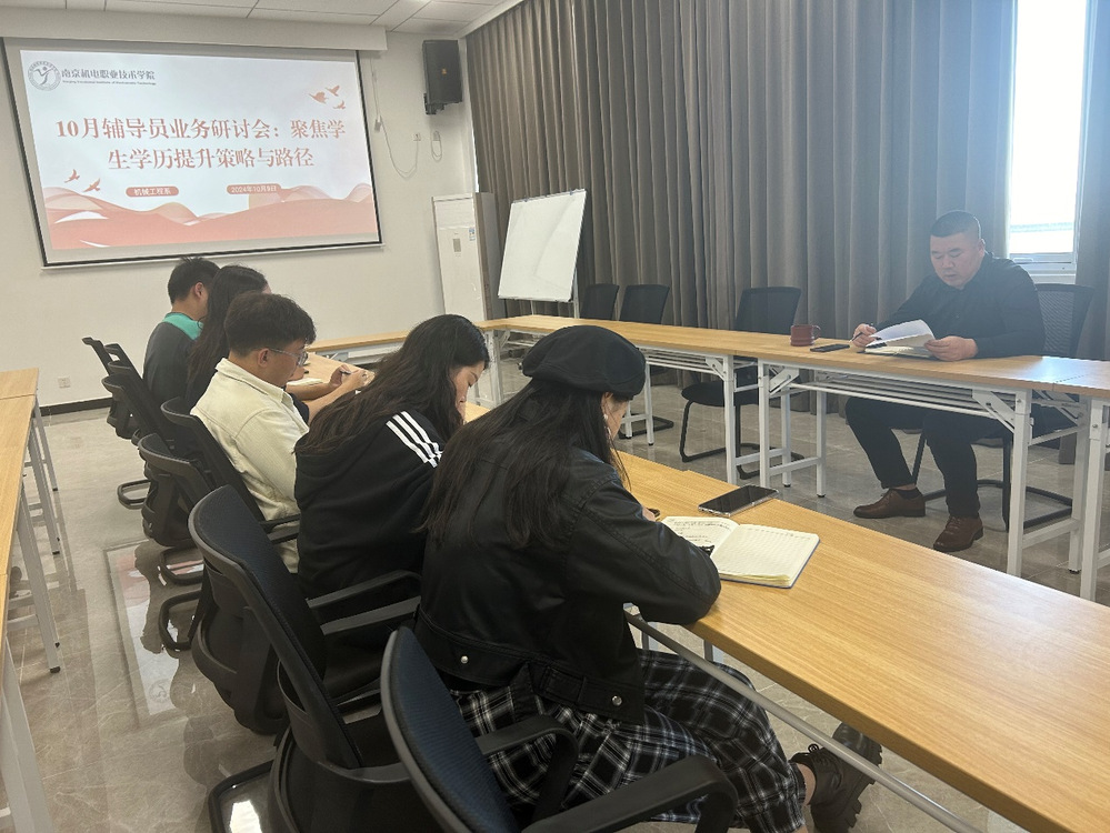 为助力学生拓宽职业发展赛道,提升学历层次与综合竞争力,10月9日下午,米兰官方网页版机械工程系在系部会议室召开辅导员业务研讨会。会议由系党支部副书记李杰主持,全体辅导员参会,围绕“学历提升策略与路径”展开深入研讨,辅导员王晨歌老师作专题经验分享。