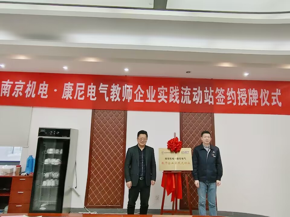 2022年12月15日,学院首批认定的教师企业实践流动站之“南京机电--康尼电气教师企业实践流动站”正式签约揭牌。南京康尼电气技术有限公司总经理马涛、市场部部长李向阳、技术总监刘蔚钊、技术副部长张中辉、综合部负责人侯露,学校党委书记、院长周庆礼,党委委员、副院长刁爱军,科研及校企合作处处长李木香,自动化工程系主任潘理平、党支部书记高水冕及流动站负责人李银露教师等参加了本次签约授牌仪式。周书记亲自送首批教师入站。