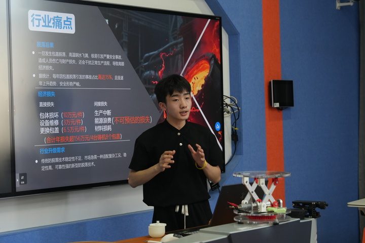 本次大赛增设了南京高等职业教育创新创业园入驻学校优秀作品展演环节。来自南京理工大学紫金学院、南京航空航天大学金城学院的项目团队带来《“红声译语”基于神经解码的聋哑人士手语交互设备》《AI慧眼识圾——可重构式全场景智能垃圾分类系统》等5件优秀作品。不同学校的师生在互学互鉴中汲取智慧,拓宽视野,成为校际双创生态中知识共生的生动注脚。