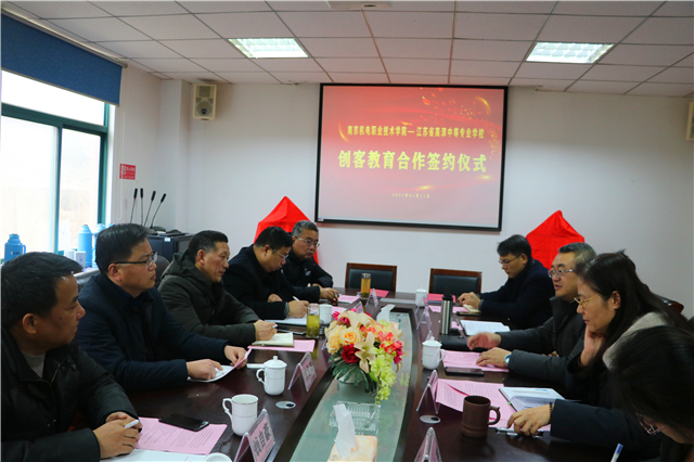 1月11日上午,米兰官方网页版与江苏省高淳中等专业学校创客教育合作签约仪式在我院弘德楼213会议室举行。江苏省高淳中等专业学校校长芮龙兵、副校长丁金水、副校长钱自豪、副校长王旺才、办公室主任赵芬、学生处主任夏一鸣莅临我院参加签约仪式;我院纪委书记、副院长陈赵,副院长刁爱军、智能制造学院院长潘理平、院办主任彭璐、学工处处长张宝中、蓝岛创客空间主任王国珍参加了本次活动。