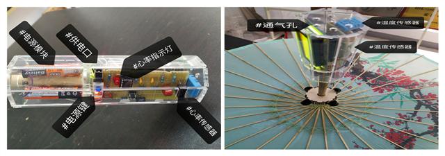 自古以来,油纸伞在我国江南一带人们的生活中扮演着重要的角色,不仅仅用来遮风避雨,还是一种人文情怀。张振等创客们在伞上装上了温、湿度传感器和蜂鸣器提醒人们携带雨伞,通过蓝牙与手机相连防止雨伞丢失,通过传感器检测心率监测人们的心脏健康。这把多功能的油纸伞不仅极具观赏性,更为传统文化赋予了现实意义。