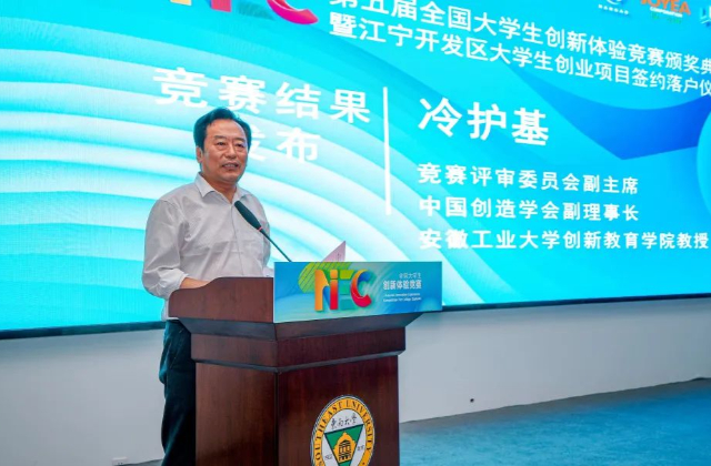 在颁奖环节中,中国创造学会副理事长、竞赛评审委员会副主席冷护基宣读获奖名单,对获奖选手表示祝贺,他指出,本次竞赛不仅是大学生展示优秀作品的平台,更是传递创新意识的载体,展现出了当代青年的蓬勃力量和家国情怀。