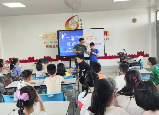 为全面展示我校职业教育的办学特色,营造全社会关注职业教育、重视职业教育的良好氛围,我校于5月28日在高淳区古柏小学开展2023年职业教育创新周系列活动——我的航天梦。本次活动由高淳职业教育集团主办,米兰官方网页版与高淳区古柏小学共同承办,古柏小学、宝塔小学、滨湖小学等共6个班学生参加了本次活动。此次活动以“我的航天梦”为主题,由蓝岛创客空间主任王国珍带队,蓝岛创客空间教师黄克瑶、候俊、朱妍焘以及双创班的学生共同前往。