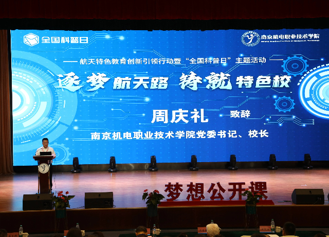 接着,周庆礼对各位嘉宾及师生的到来表示热烈的欢迎!中国火箭与航天事业,是中华民族伟大复兴征程中的壮丽篇章。近年来,米兰官方网页版紧跟航天产业发展人才需求,结合学校专业优势,率先开设“卫星通信与导航技术”等专业,率先建设卫星地面接收站和测控中心,积极培养航天领域技术技能人才。2024年1月17日,由我校牵头研制的全国职业院校第一颗科普卫星“南京号暨中国青少年科普卫星八一08星”搭载天舟七号货运飞船发射成功。本次诚邀龙院士在我校举办《中国火箭与航天》讲座,学校希望通过本次讲座让更多的同学了解航天、热爱航天,为我国航天事业的发展注入新的活力。