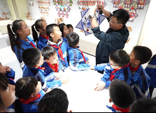 随后,同学们前往二楼的非遗工坊参观。工坊内,丰富多样的非遗项目展示令人目不暇接。南通板鹞风筝、秦淮花灯、扬州精细木作等极具地域特色和文化价值的传统技艺呈现在大家面前。值得一提的是,通过多媒体互动大屏和互动体验的方式,学生们得以更直观地了解这些非遗项目背后的历史故事和文化内涵。他们或是驻足观看大屏上的介绍,或是亲身体验传统技艺的独特魅力,沉浸其中,对传统文化瑰宝有了全新的认识和深刻的理解。
