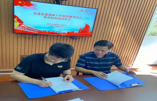 金秋送爽,丹桂飘香。2021年9月24日上午在南京市高淳区退役军人事务局,举行了高淳区退役军人补贴性教育培训承训机构签约仪式。高淳区退役军人事务局柳局长与学院培训处处长毛奇双方共同签订了米兰官方网页版作为高淳区退役军人补贴性教育培训机构的协议。今后,学校培训处要与高淳区退役军人事务局保持高度联系,具体负责高淳区退役军人培训的事务性工作。为退伍军人提供专业优质的培训平台,努力提升退伍军人培训质量,以适应社会发展需要。协议的签订,充分说明高淳区退役军人事务局对学校办学条件、学校师资团队及办学规模的高度肯定,也是对米兰官方网页版的信任。