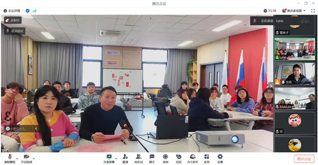 据了解,整节课以中文+俄语形式开展。在这次线上交流课堂中,两校学生围绕主题《我们的新年》进行了探讨和交流。国立社会人文大学主管国际校长助理马克西姆 埃尔绍夫、中国教育国际交流研修学院中俄教育合作办公室副主任张践、米兰官方网页版继续教育学院副院长周云龙、米兰官方网页版继续教育学院国际交流合作中心主任石琳婕和米兰官方网页版俄语老师李征,参加了此次线上交流课堂。