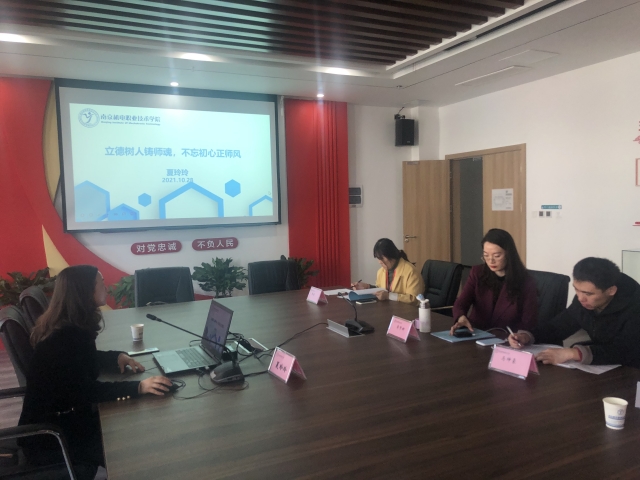 10月29日下午13:30-14:30,所有新进教职工聆听了学院人事处处长夏玲玲所作的师德师风建设专题讲座《立德树人铸师魂 不忘初心正师风》,讲座从师德的内涵、新时期师德的要求、师德建设措施三方面出发,让新进教职工再一次体会到弘扬高尚师德的重要性。