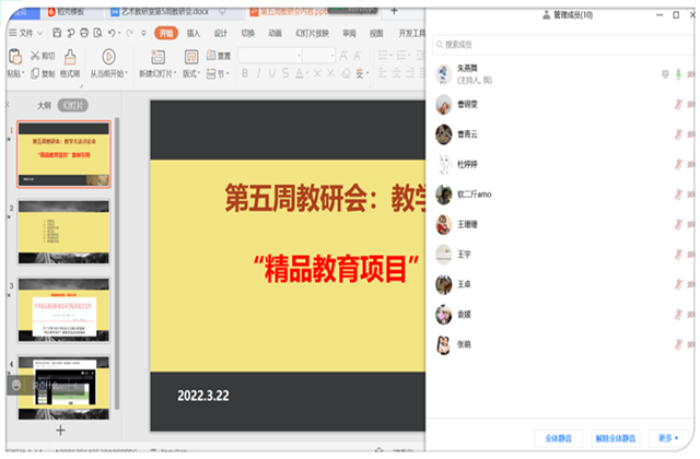 2022年3月22日下午,艺术教研室老师进行线上教研会,本次会议主题是教学方法讨论会。主要内容围绕教学方法——案例化教学法进行研讨。