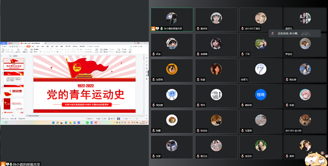 在各团支部团课上,团支部书记带领团员青年从早期青年团组织的诞生、中国社会主义青年团的创建,到工人运动的先驱、共青团跟随共产党在土地革命中奋斗,对“党的百年青年运动史”进行了较为系统的宣传学习。