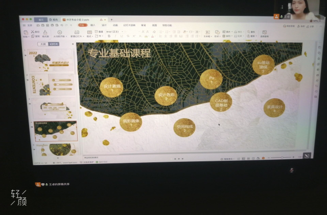 2022年9月13日下午,由环境艺术设计专业负责人王卓老师主讲的2022级环境艺术设计专业介绍会因新冠肺炎疫情防控要求在线上如期举行,环艺专业全体新生在宿舍有序参加了这次会议。介绍会主要分为专业概况、课程介绍、大学生涯建议三个部分。