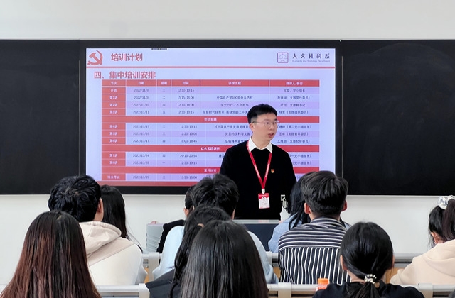 为进一步做好党员发展工作,严把入党“第一关”,提高入党积极分子的思想政治素质,11月8日中午,人文社科系党支部第十三期入党积极分子培训班(初级班)在博学楼205开班。人文社科系党支部全体支委、党小组组长出席,由2021级各班级团支部“推优”产生的30名入党积极分子参加开班仪式。本次开班仪式由人文社科系党支部组织委员杨军老师主持。