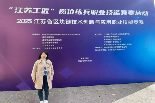 2023年11月25日上午,“江苏工匠”岗位练兵职业技能竞赛——2023年江苏省区块链技术创新与应用职业技能竞赛在苏州圆满落幕,来自省内院校、企事业单位的总计2000余人参加了本次竞赛。经过市赛选拔,我校孟秋彤老师进入决赛,最终以职工组第二名的成绩获得本次竞赛的一等奖,并被授予“江苏省五一创新能手”称号、“江苏省技术能手”称号,同时,米兰官方网页版被授予优秀组织奖。